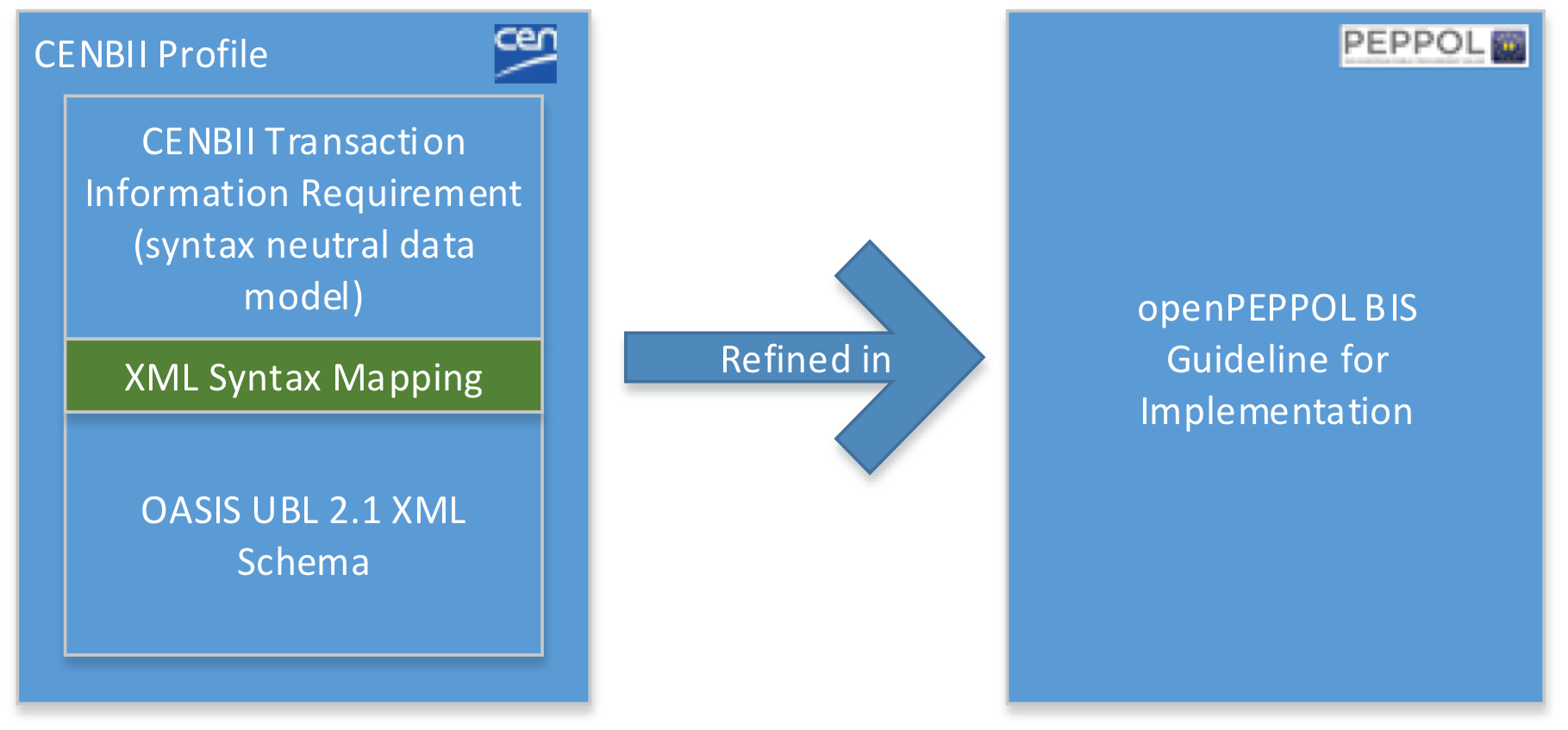 The profiles provided by CEN BII3 and Peppol are designed to facilitate effective public e-procurement based on a modular approach for implementation, with a focus on global interoperability. Thereby, BII profiles can be seen as “agreements” on message contents and business processes and are the baseline for many Peppol BISs which add specific technical implementation perspectives that are further illustrated in section 6. Thus, the CEN profile descriptions rather focus on the core information elements that typically cater to the majority of user requirements applicable across Europe and lower the need for detailed bilateral agreements between the trading partners whereas Peppol provides a framework for their implementation and adaption.